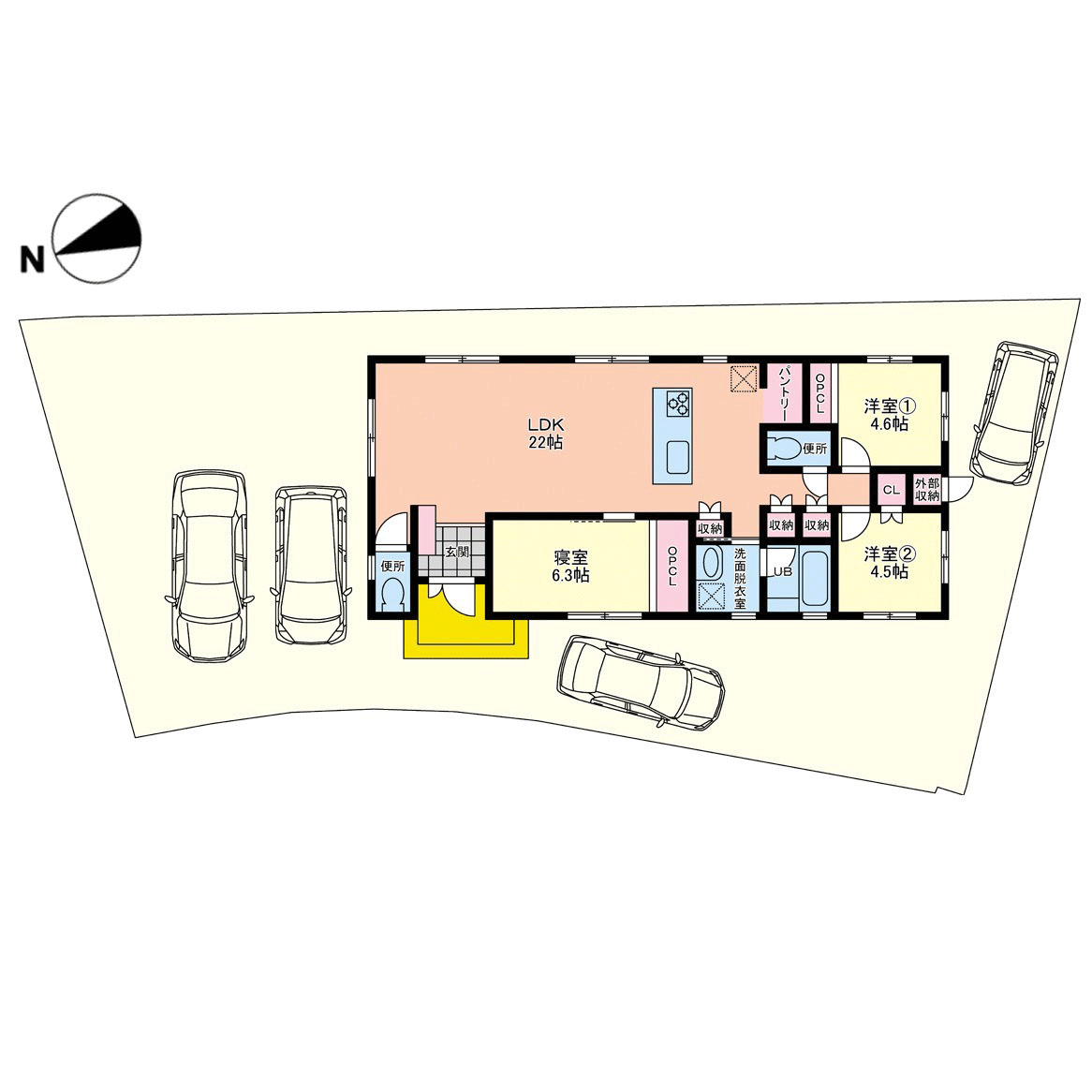 A~G計7棟、広々とした敷地についの棲家に相応しい平屋建て!しかも沖縄の風土に根差した鉄筋コンクリート造りだから、木造家屋に比べ台風、シロアリの心配も最小限!