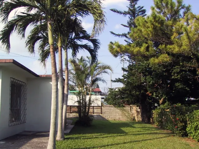 外人住宅リノベーション物件/価格:1,380万円/所在地:沖縄県宜野湾市大謝名2-13-7/構造:RC-B/階数:平屋/面積:延べ102.18平方メートル(30.90坪)/都市計画:市街化区域/用途地域:1種低層/年間借地料:85,500円/名義書換料:500,000円/建ぺい率:50%/容積率:150%/地勢:高台